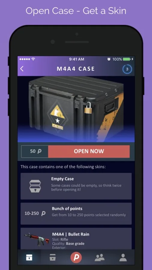 You may win any skins, cases, keys and graffiti for CS:GO for FREE. Just choose your case and open it.