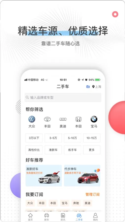 整合汽车报价大全、二手车、全方位无死角对比不同车型,从图片到视频、VR,让你快速了解一款车,汽车报价、买新车、二手车,买车一触即达带你开启简单汽车生活。