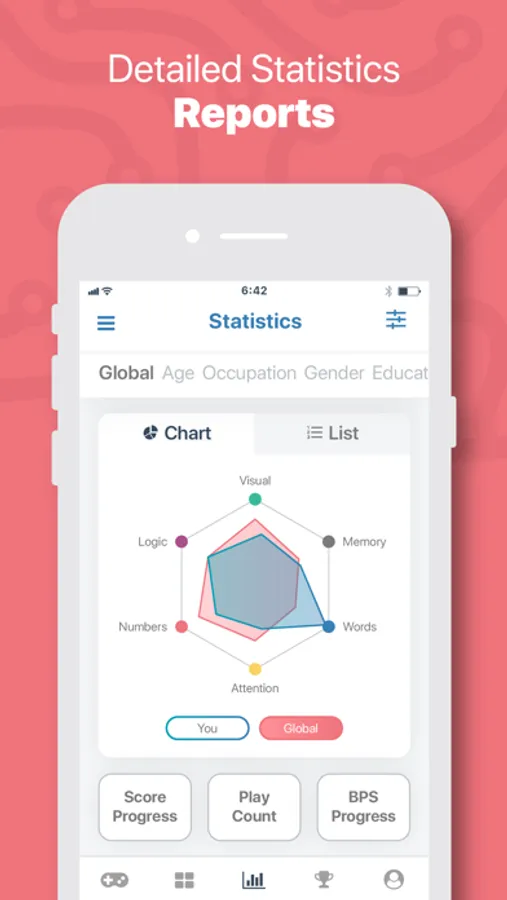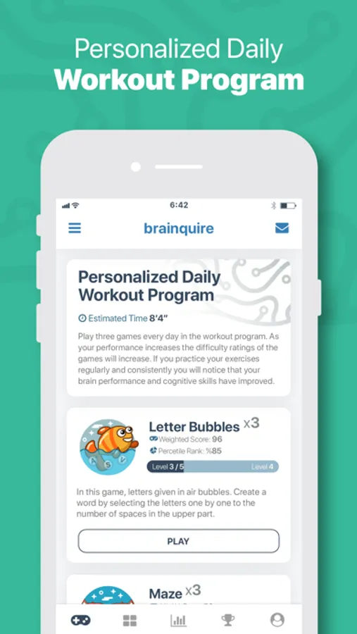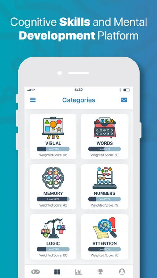 Improve and monitor your abilities in respective fields by making use of games and applications in various categories (verbal, quantitative, visual, logical, memory and attention).