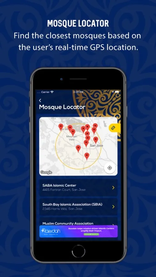 Easily Find The Nearest Mosque Along With Their Information And Directions From Your Current Location With Different Radius Ranges.