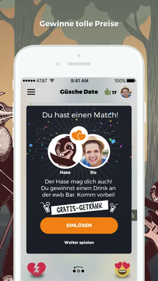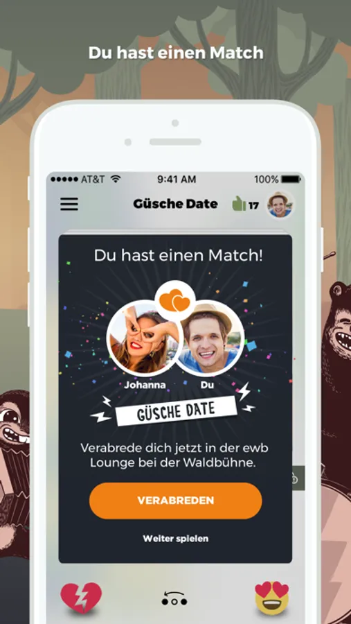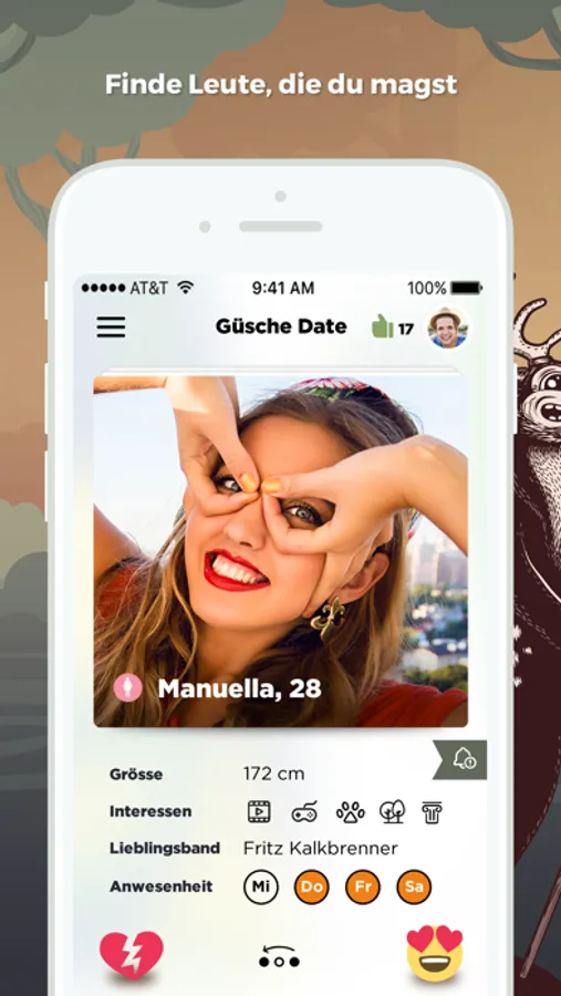 - Finde Leute, die du magst: Wische links/rechts und triff dein Güsche Date