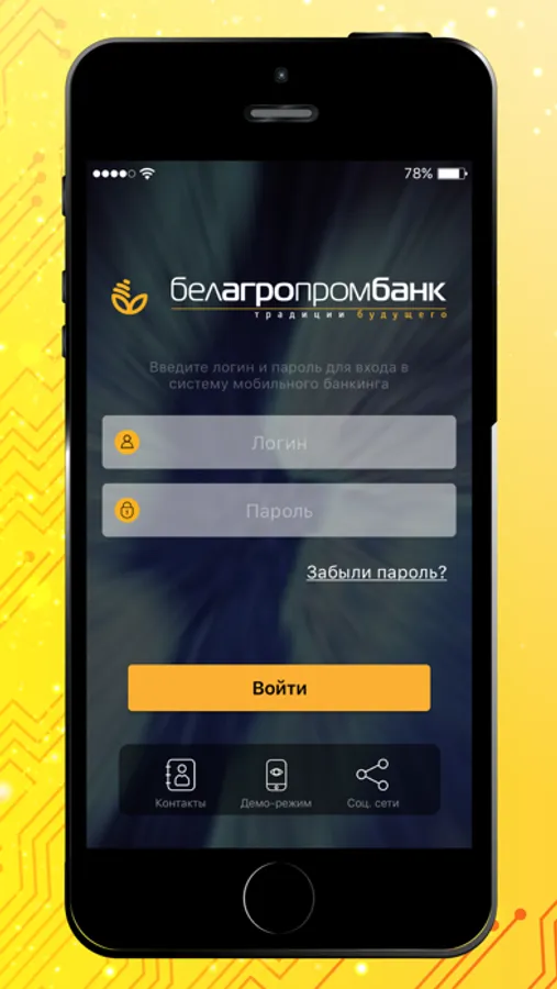 Вход в приложение осуществляется по логину и паролю как в Интернет-Клиенте, а для аутентификации может использоваться функция Touch ID и Face ID (при наличии в смартфоне).