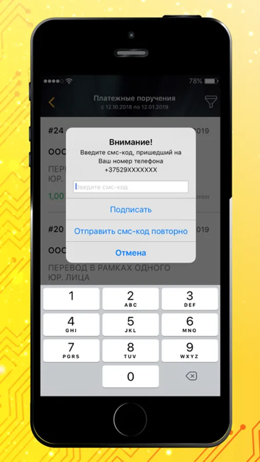 предоставить в Банк Заявление на подключение к «Мобильному Банку» с указанием номера мобильного телефона, на который будет приходить код для подтверждения платежа.