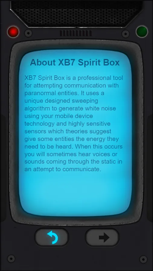 XB7 Spirit Box is a professional tool for attempting communication with paranormal entities. It uses a unique designed sweeping algorithm to generate white noise using your mobile device technology and highly sensitive sensors which theories suggest giving some entities the energy they need to be heard. When this occurs you will most commonly hear voices or sounds coming through the static in the attempt to communicate.