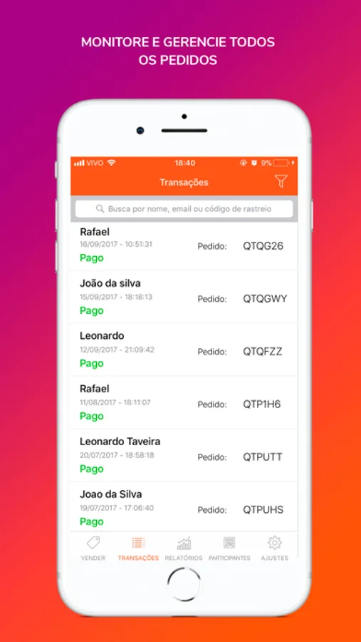 O uso desse App é destinado para organizadores de eventos e comissários de vendas.
