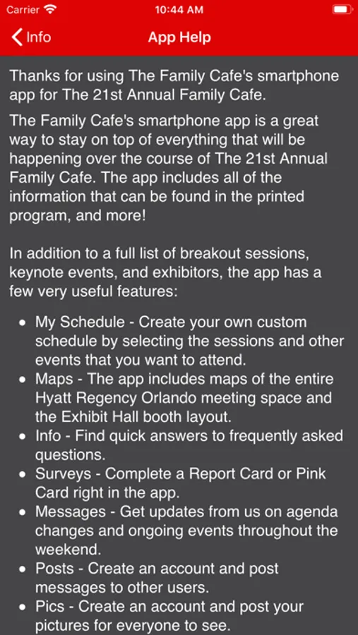 This is the official event app for The Annual Family Cafe. Our event app includes all of the information you will find in the printed program, including a full list of presentations with synopses, a list of presenters, a list of exhibitors, information on keynote presentations and details about every other event scheduled for The Annual Family Cafe. The app also allows you to stay connected with us for news, updates, and schedule changes throughout the course of the event. To stay on top of everything that's happening at The Annual Family Cafe, download our official app today!