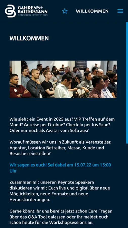 Wichtig zu wissen: Um mit „G+B Interactive“ an einer Veranstaltung teilzunehmen wird eine Veranstaltungskennung benötigt.