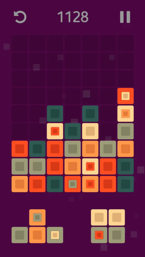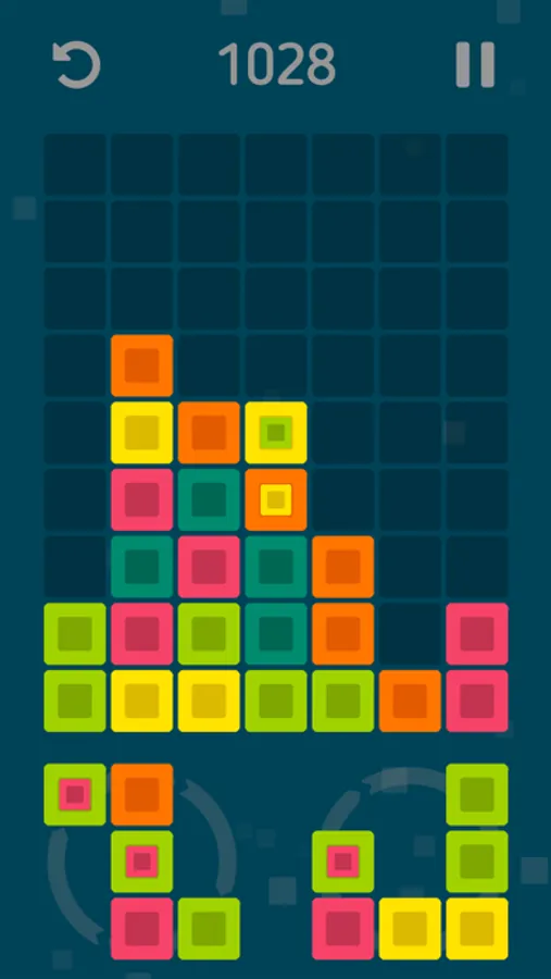 Your goal is to place the shapes of color blocks on the game field and create groups of three or more blocks of the same color that will be deleted and make space for new blocks. The more blocks you remove at once, the more game points you will get. At the beginning of the game all the shapes consist of blocks of the same color, but with score growth will appear blocks containing another blocks of a different color. After the removal of such blocks, the internal blocks will increase and occupy the places of the removed blocks. Did you make the wrong move? Use the undo button to undo your last move. Your game is automatically saved when you exit, so you can interrupt at any time and continue the game from the same place. Your goal is to survive as long as possible and score as many points as possible.