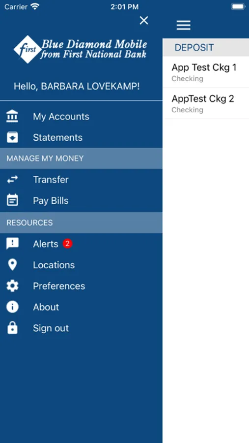 Blue Diamond Mobile Banking enables customers to use their iOS device to view account balances and transaction history, initiate account transfers and pay bills.