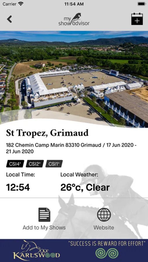 Now with myshowadvisor's user-friendly phone app, it has never been as easy to plan your Horse Shows. If you are a rider, groom, owner or spectator, you will find that this is a one-stop shop where you can find local information on hotels, restaurants, things to do, how to get there, results and many more features. Explore the calendar to help you plan your shows.