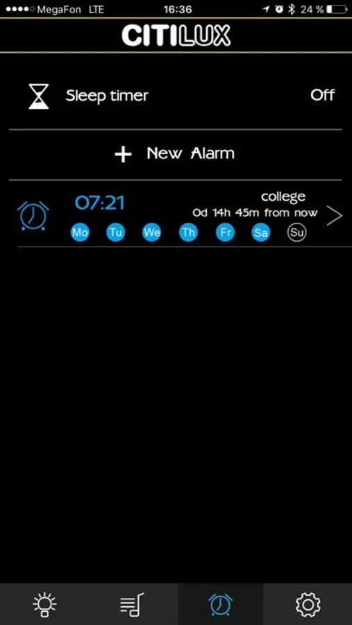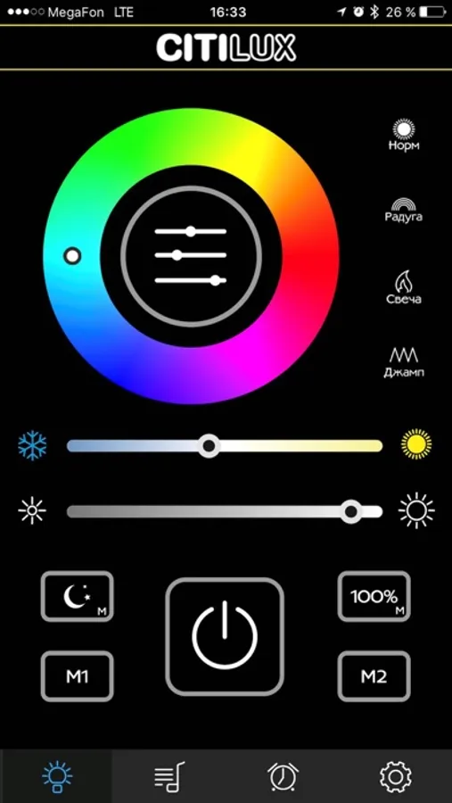 CITILUX LIGHT & MUSIC – мощное приложение для управления световыми и музыкальными возможностями светильников CITILUX по Bluetooth. Разделы управления музыкой и будильниками продолжают работу и при отсутствии связи со светильником.