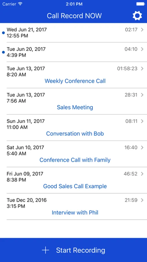 From within the app, Call Record Now allows you to: