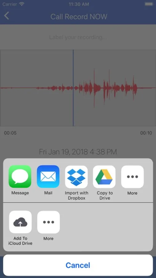 Share your recorded calls from within the app as an MP3 via: