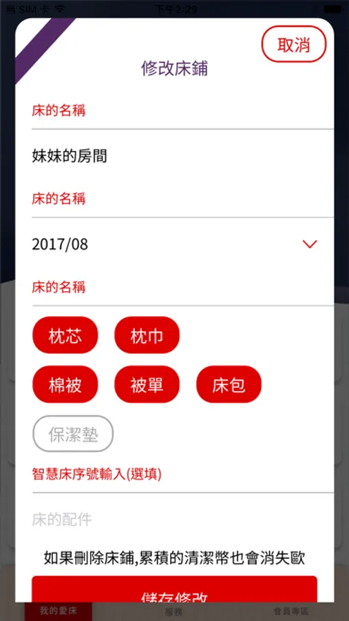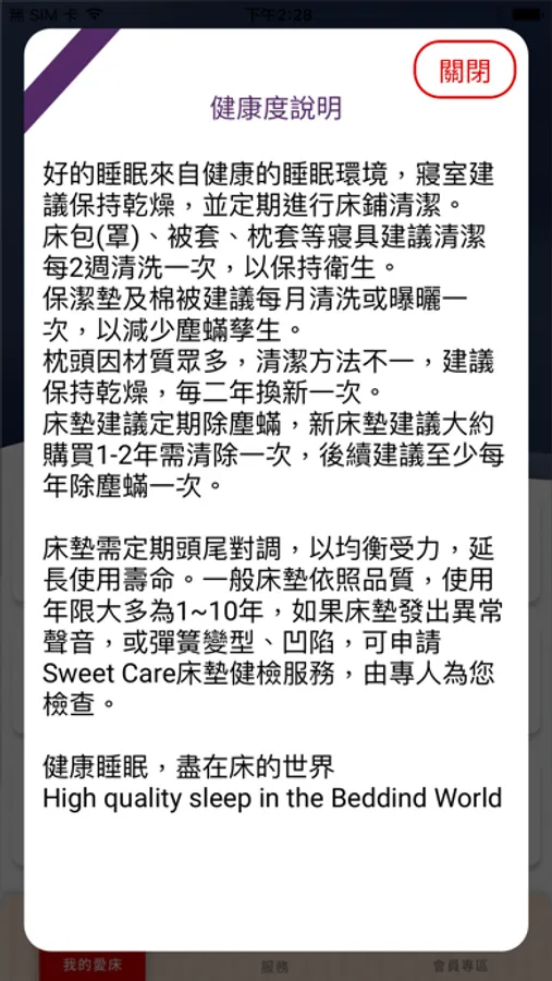我的愛床:提供床務清潔管理工具,協助維持睡眠環境的健康狀況。