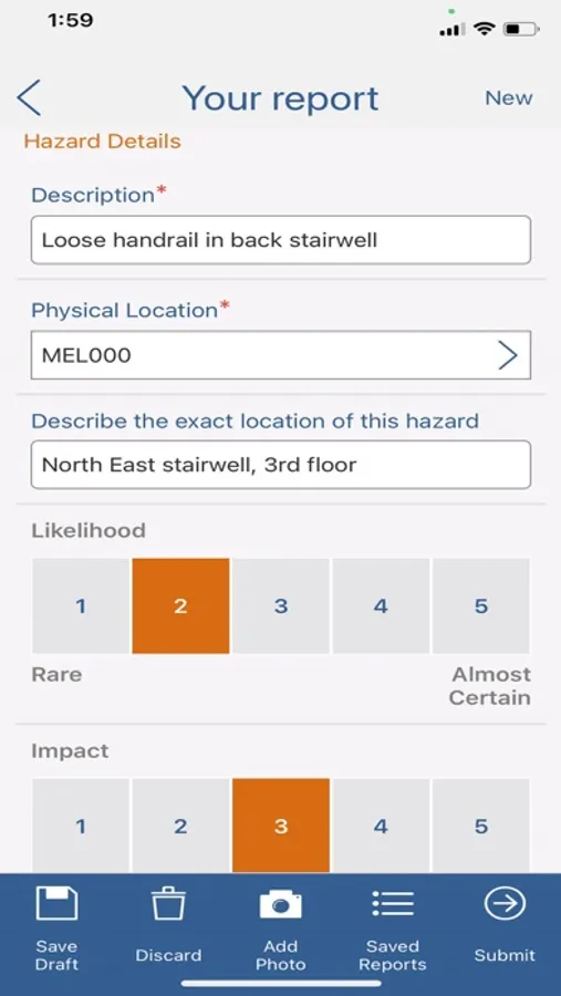 The Workplace H&S app gives staff a way to quickly log safety events and hazards.