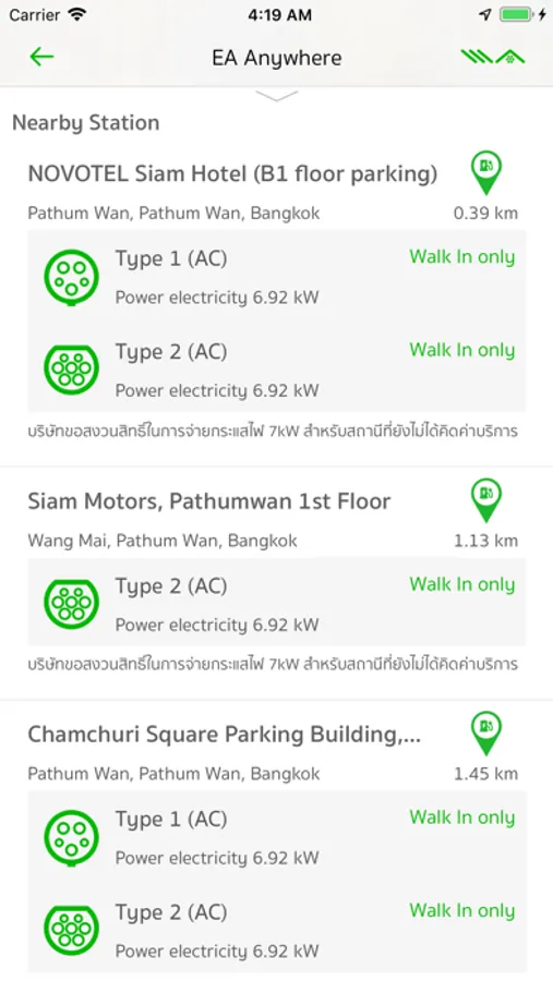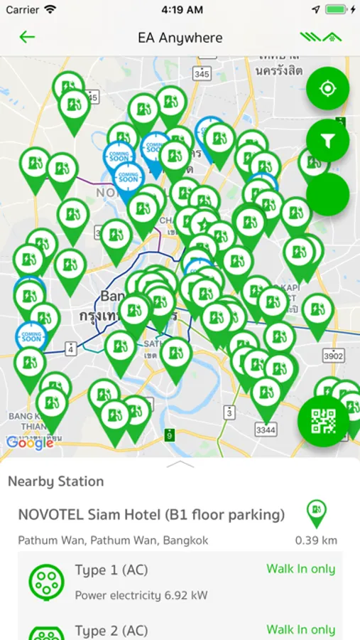 EA Anywhere stations are located across Bangkok in the most prime area, you can easily find us on our mobile EA Anywhere application. The application will help you to locate and navigate to our charger locations.