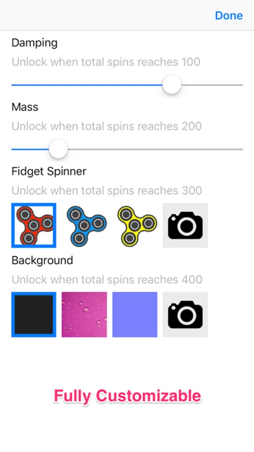 + Fully customizable fidget spinner - mass, damping, and looking