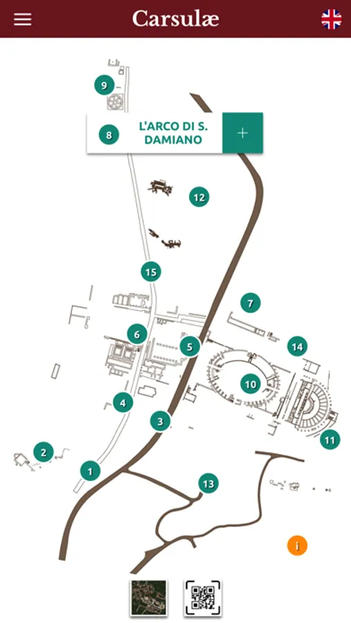 There are QR Code information guides throughout the Archeological Park: you can activate the code scan and directly access the relative section.