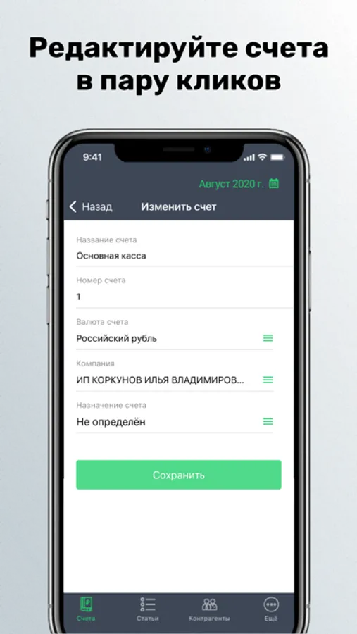— Возможность вести виртуальные счета (касса, наличные) и операции по ним.