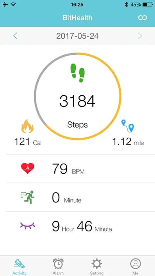 BitHealth HR is the app for BitHealth HR smart band. BitHealth HR smart band can tracking all-day activity, exercise, sleep, resting heart rate and exercise heart rate. With BitHealth HR runs on the phone, all data stored in smart band can be transferred to app and store in the phone. BitHealth HR can display daily activity data including steps, calories burned, and distance. BitHealth HR also can display resting heart rate for 24 hours, exercise heart rate for the period of exercise, including highest heart rate and average heart rate. BitHealth HR can show sleep information including start/end time, light sleep time and deep sleep time. With the BitHealth HR we can set daily activity goals, alarm, and the time for reminders to move. All activity data recorded by BitHealth smart band with HR can be checked on the BitHealth HR app. Learn more about BitHealth product and BitHealth HR app at www.bithealth.net.
