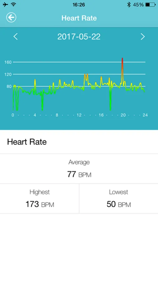 BitHealth HR 是BitHealth智能心率手环的app。BitHealth智能心率手环可以追踪您一天的活动数据,锻炼数据,睡眠数据,记录您的静息心率以及运动时的实时心率。所有智能心率手环中的数据都会同步到BitHealth HR app记录和保存。BitHealth HR可以向您展示您一天的步数,卡路里消耗量,里程,也可以显示您一天24小时的静息心率以及运动时的动态实时心率其中还包括了最高心率以及平均心率的记录。BitHealth HR还可以向您展示您的睡眠状况,包括了睡眠的起止时间以及浅睡时间,深睡时间等。BitHealth HR还可以同步手机时间到手环,设定每日运动目标,设定闹钟以及久坐提醒的时间间隔等。更多产品信息和应用信息请访问www.bithealth.net加以了解。