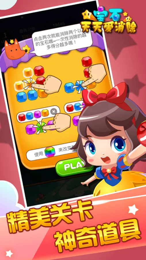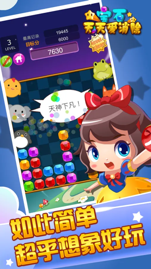 超爽快经典消除游戏《宝石天天爱消除》终于来了,令人上瘾的爽快体验!带给你经典的纯真快乐!玩法简单有趣,是手机必备的时间杀手小游戏,一旦开始根本停不下来!