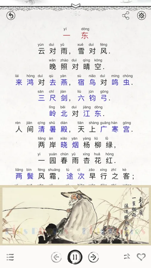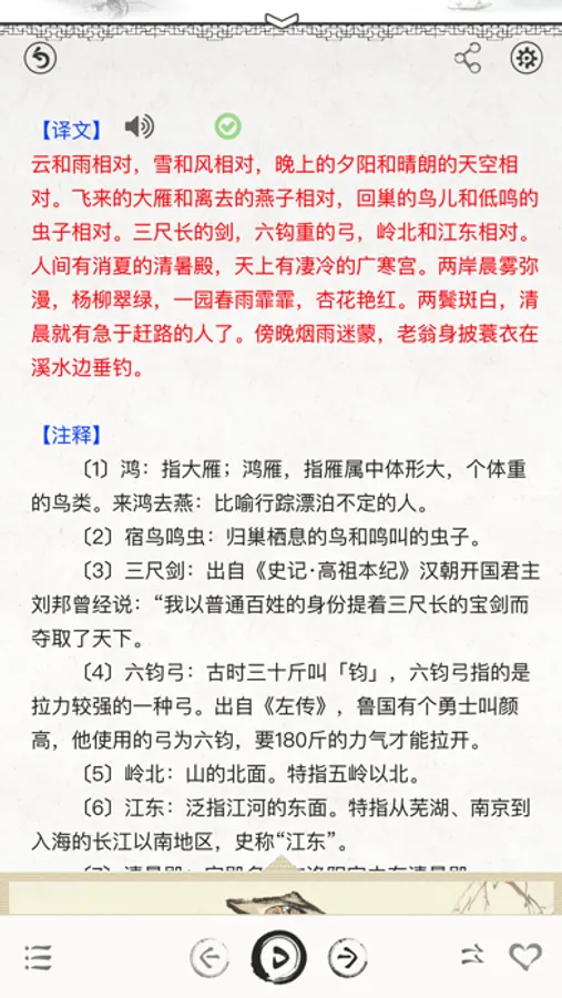○ 背景音乐为唐诗古典音乐,贴切主题,赏诗时感觉美妙无比。