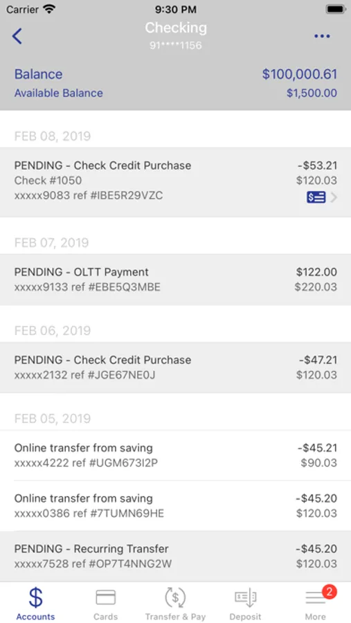 • View recent transactions, including check images
