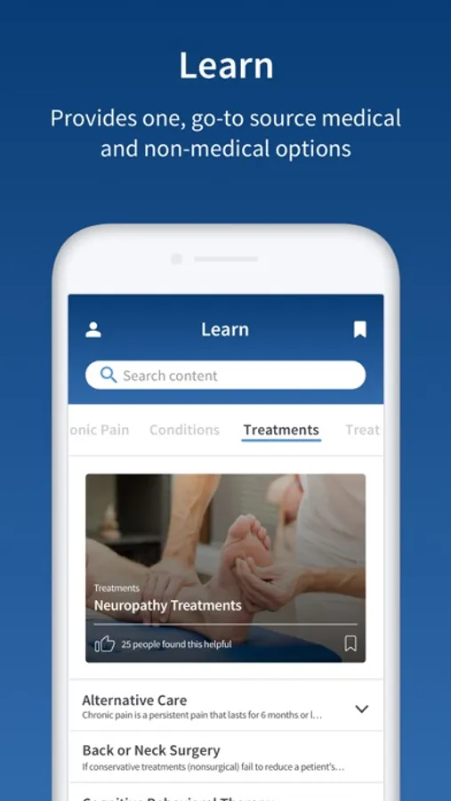 • Trusted Content – get FREE access to a searchable library of articles, videos, and meditations to help find pain relief