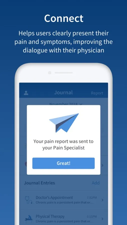 Created with input from doctors and chronic pain patients, the Pain Diary acts as a pain tracker and organizes all the information the patient needs in one accessible location. With over 800 organized articles, health tips, exercises, and information on pain meditation programs and treatment options, pain management becomes easier.