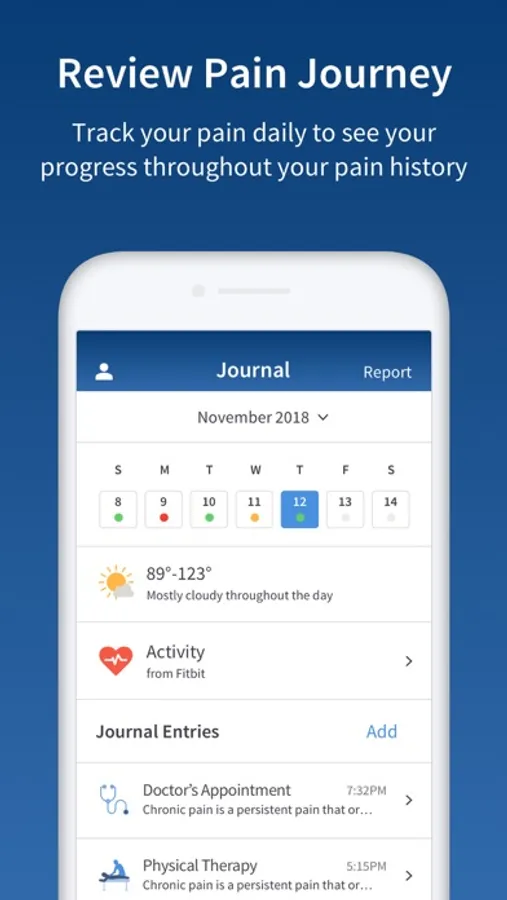 • Pain Diary – log and track your pain to track triggers, pain intensity, symptoms, treatments, medications, activity, mood, and sleep digital scale.