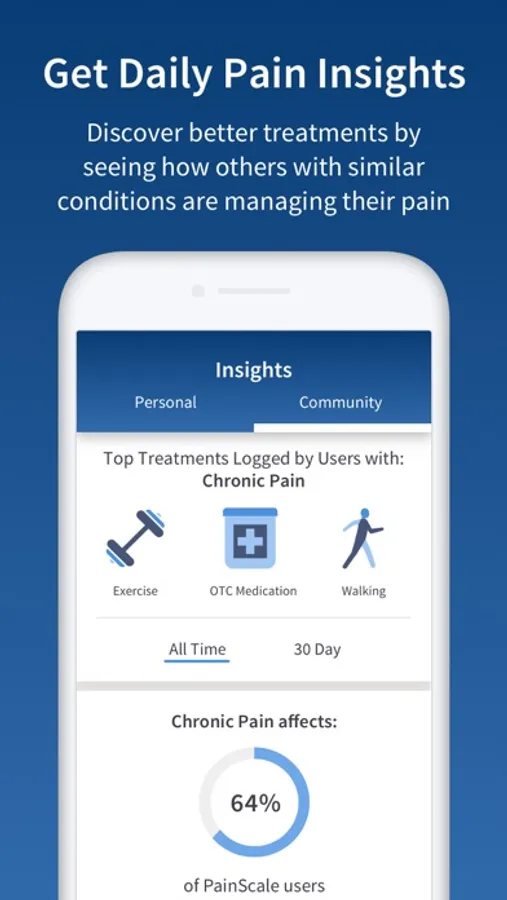 PainScale provides personalized pain management education for users. Trusted content is available to help people understand their symptoms and better manage their condition. By providing insights to a community of other patients who share their treatment information, PainScale helps patients discover information on treatment options that may work for their condition. PainScale is an easy and simple to use, pain and health tracker app.