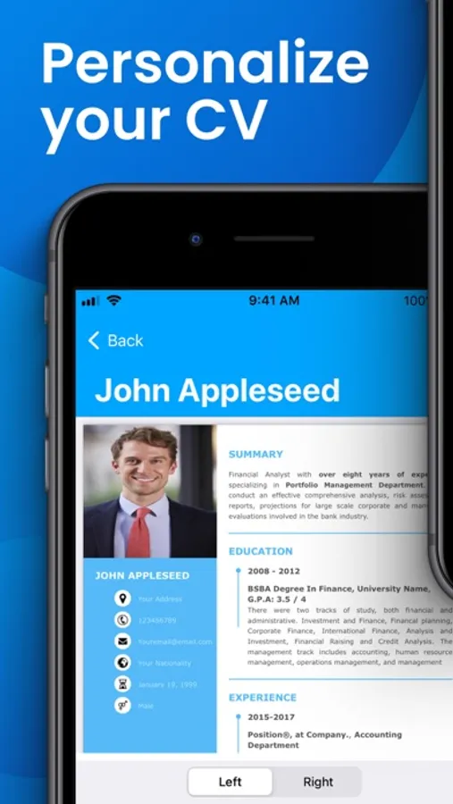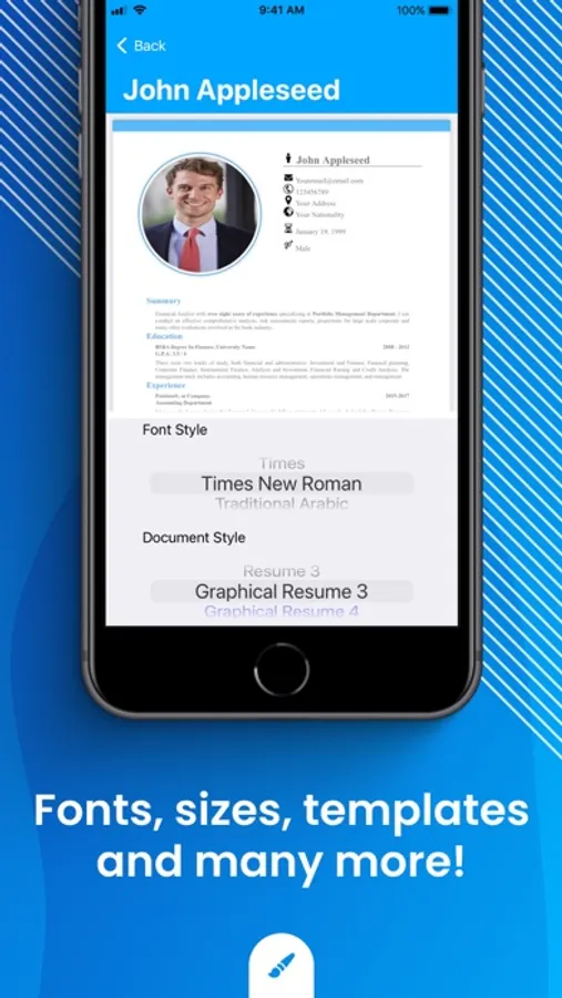 Simply, fill out the fields with the required information, and Maseerati will prepare your resume as a PDF document. then you can print it wirelessly, or send it via e-mail to the employer easily!
