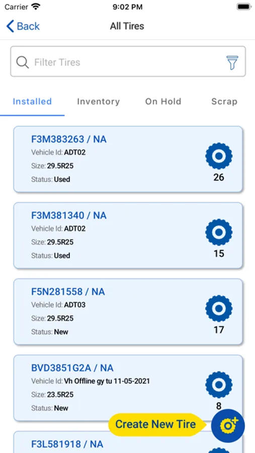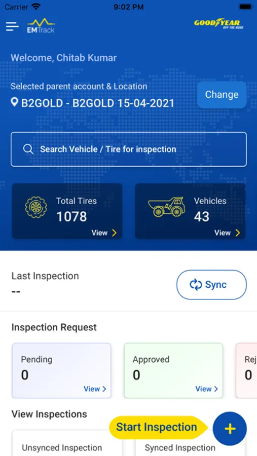 Goodyear EMTrack mobile application helps users to inspect Tires of OTR vehicles. Users can view vehicles and tire details and update hours and miles on a vehicle.