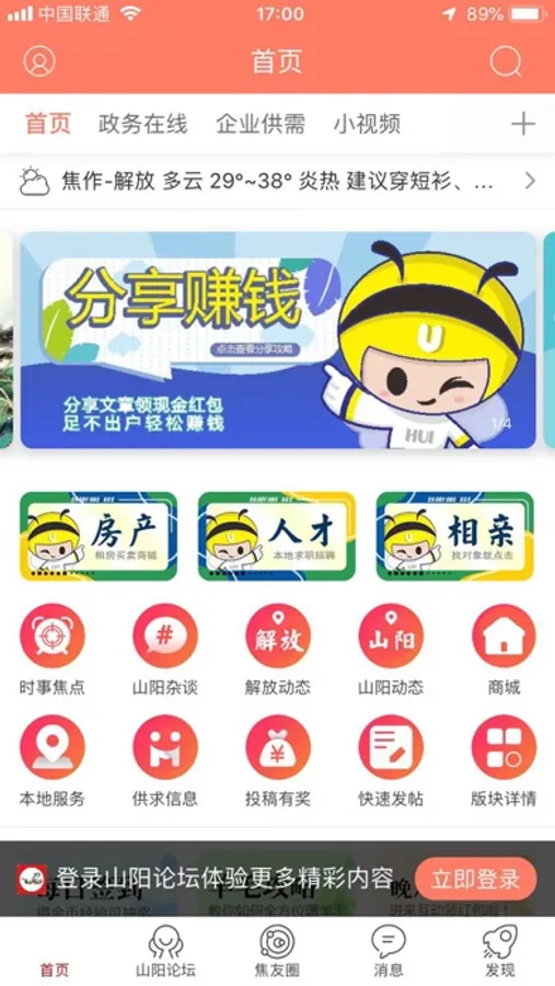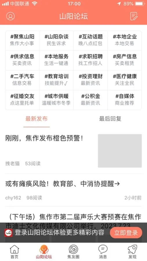 山阳论坛APP是焦作市历史悠久的综合性门户网站山阳论坛旗下第一轻社交APP,致力于打造焦作影响力广泛的移动互联网社交平台。山阳论坛——手机上的论坛,讨论本地新鲜事、爆料最新民生消息,焦作大小事一手掌握;全新推出的生活圈功能丰富,发照片、发视频、晒生活、随时随地和志趣相投的网友交流,帮你快速找到焦作有共同兴趣爱好的朋友圈。