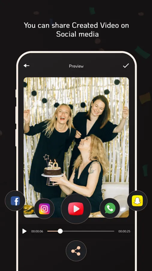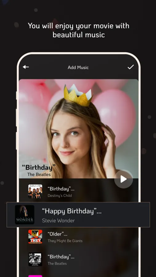 Birthday Movie Maker with Music apply for make amazing video from your gallery photos with your selected music as well as beautiful frames to apply. Arrange the photos in order with the perfect background, music and animation to create a video of your own.