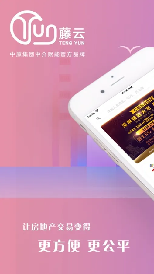 藤云是中原集团中介赋能官方品牌。以为广大购房者提供创新的、优质的购房服务为目标,致力开创线上信息流、线下服务流的无缝整合,通过线上宣传推广、线下渠道拓客,实现开发商以及购房客户之间高效交流、优质服务、信息公开,最终使多方受益。藤云APP则给专业的经纪人及开发商打造一个最新最快的楼盘信息全方位平台,助力经纪人了解客户进展,轻松赚钱,帮助开发商高效推盘,实现项目全掌控。