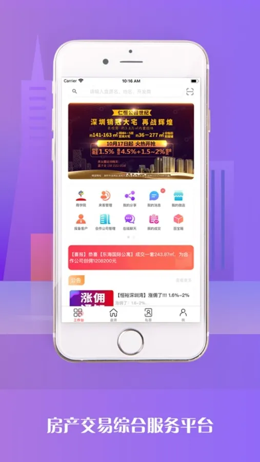 -楼盘:高佣推荐楼盘优先展示,多种排列方式自行选择;楼盘动态随时发布;现场印象实时填写
