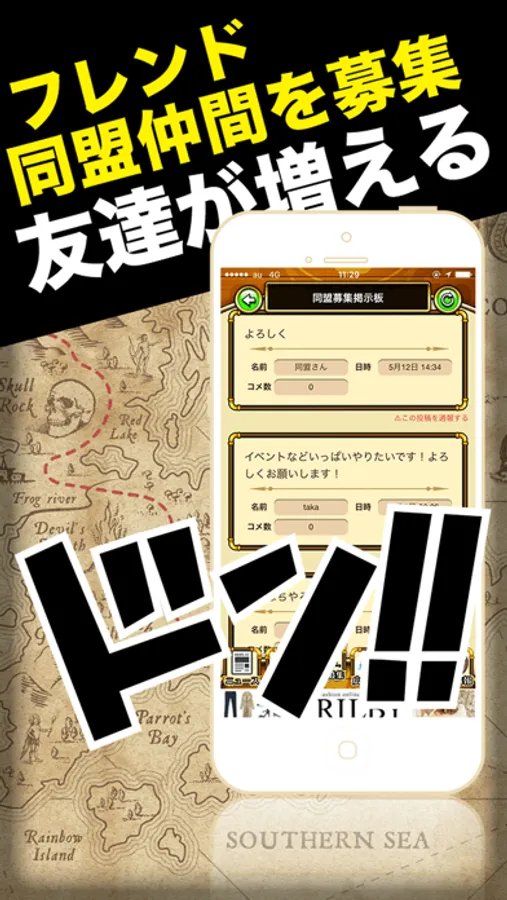 ・フレンド募集、同盟募集、広場募集が簡単!掲示板でお好きな時間に情報の交換が出来ます!