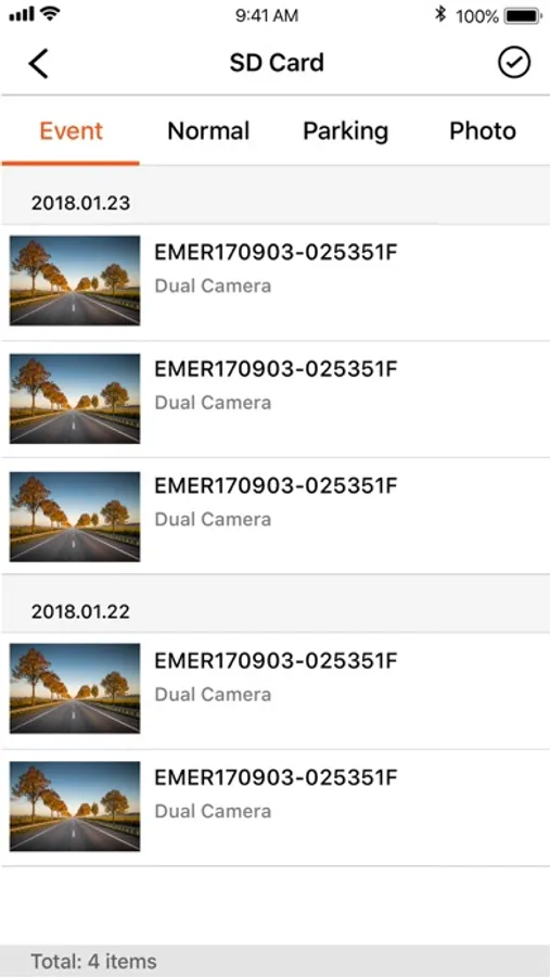Click “Live View” to adjust horizontal level of the camera before installation. Videos will be categorized by date and type (Normal, Event or Parking mode folders).