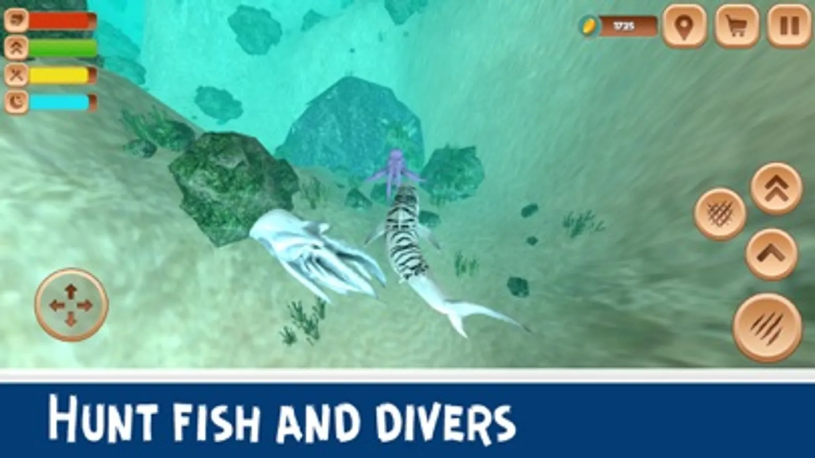 Keep in mind your shark hunger bar, don’t let it drop! Chase your prey - fishes, cephalopods, dolphins and, of course, humans – slay them and eat! Eat as much as you can to stay alive – or you should die from starvation! Feel like a true underwater predator with Giant Tiger Shark Simulator 3D!
