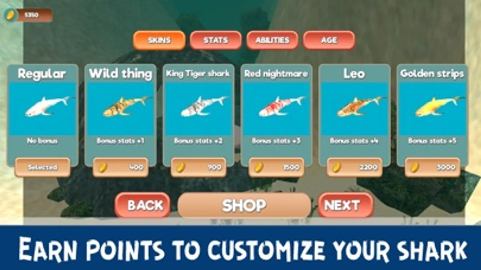 Earn points for each killing to customize your shark, unlock new islands and underwater locations or even buy a new shark! great white shark, Atlantic weasel shark, whiskery shark, finback catshark, and even little tiger catshark – you can choose any of these species!
