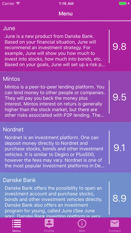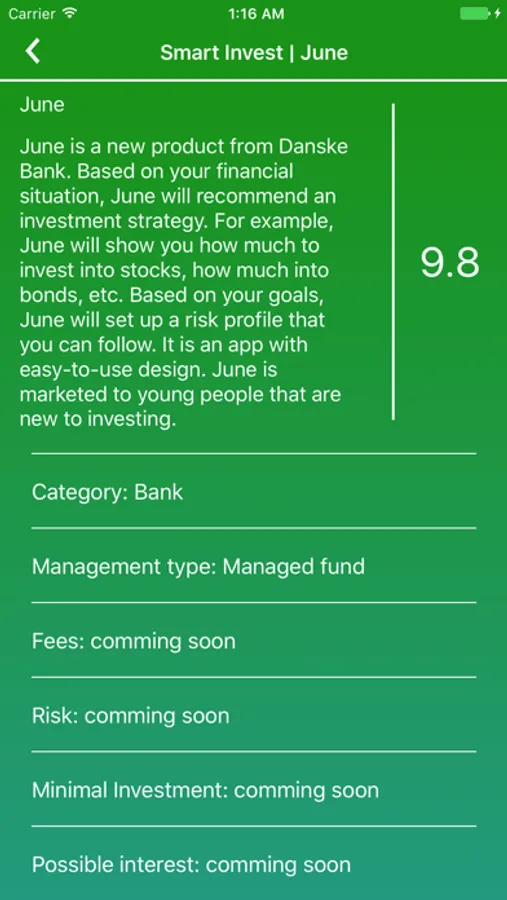 Smart Invest is the ultimate guide for first-time investors as well as experienced players. The app will easily guide you through all investment options and help you choose the best one for your situation, based on our rating system. Smart Invest is not associated with any one bank, broker or advisor so you can be sure that you are getting the best, objective opinion.