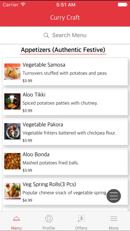 Curry Craft App can be used by end customers to view and place online orders for Curry Craft restaurant.