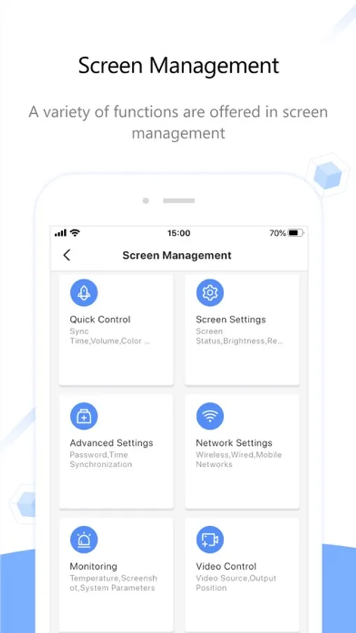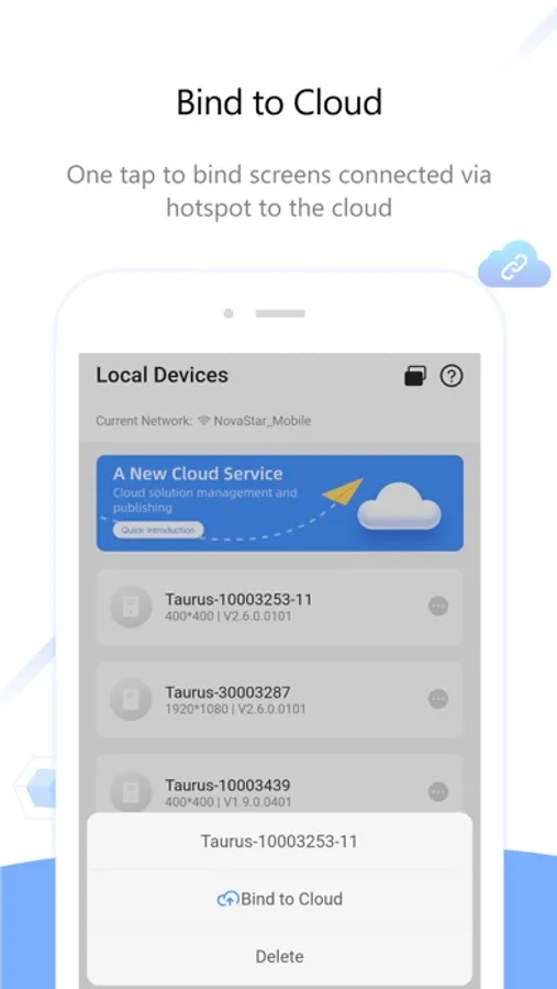 Screen management: Allows you to manage the Taurus series products in the LAN and supports quick screen configuration, real-time control, playback management, cloud server binding and so on.
