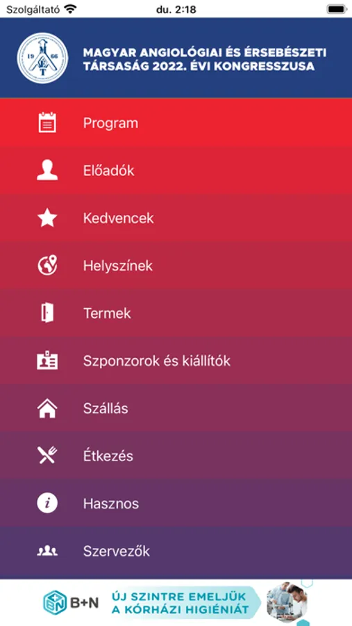 A MAÉT a Magyar Angiológiai és Érsebészeti Társaság kongresszusának hivatalos mobil alkalmazása. Töltse le, és mindig a zsebében lesznek a kongresszus leghasznosabb információi: a program, az előadói profilok, a helyszíni térképek, navigáció valamint egyéb tájékozódást segítő anyagok. Sőt, az alkalmazás segítségével üzeneteket is fogadhat, melyek figyelmeztetik, ha változik a program, emlékeztetik a társasági/szociális eseményekre vagy tájékoztatják bármely a kongresszuson felmerülő közérdekű információról.