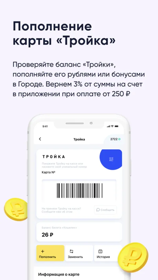 Пока вы читали этот текст, мы уже начислили вам бонусы за пополнения карты «Тройка» за последние полгода. Привяжите «Тройку» в профиле и проверьте сами! Кстати, пользователи из других городов тоже могут стать участниками программы лояльности.