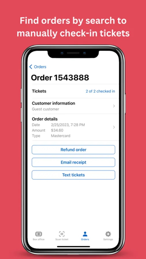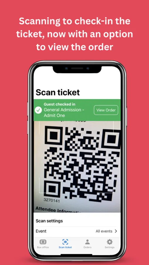 Evvnt’s mobile box office also includes additional tools to better manage your events. View sales and inventory information, control available ticket types, search orders, and more.