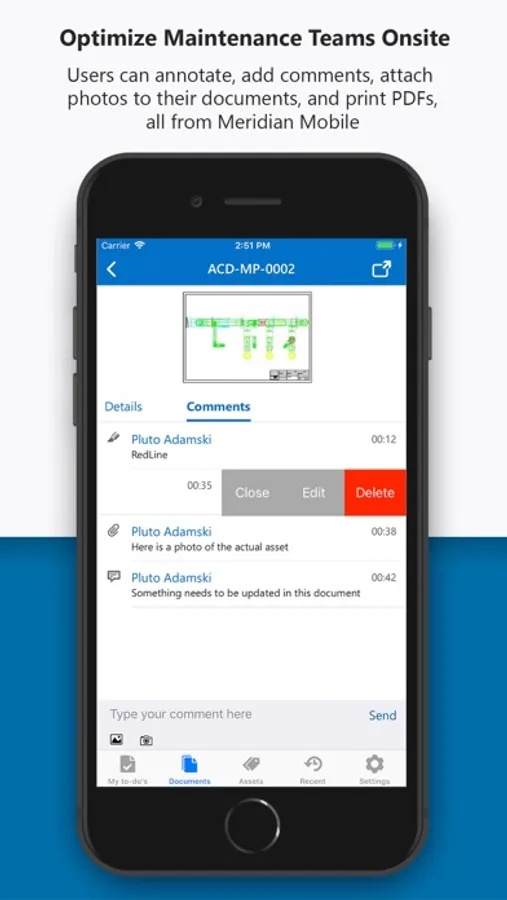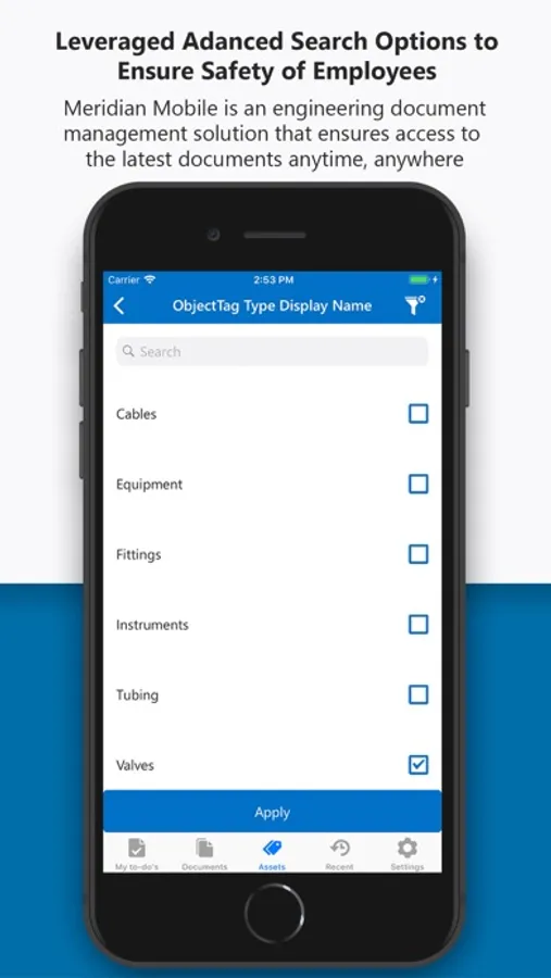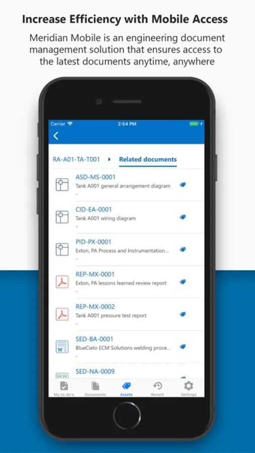 The Accruent Meridian mobile application provides field operatives direct access to asset related engineering information when and where it is needed most, at the shop floor to maximize wrench time.