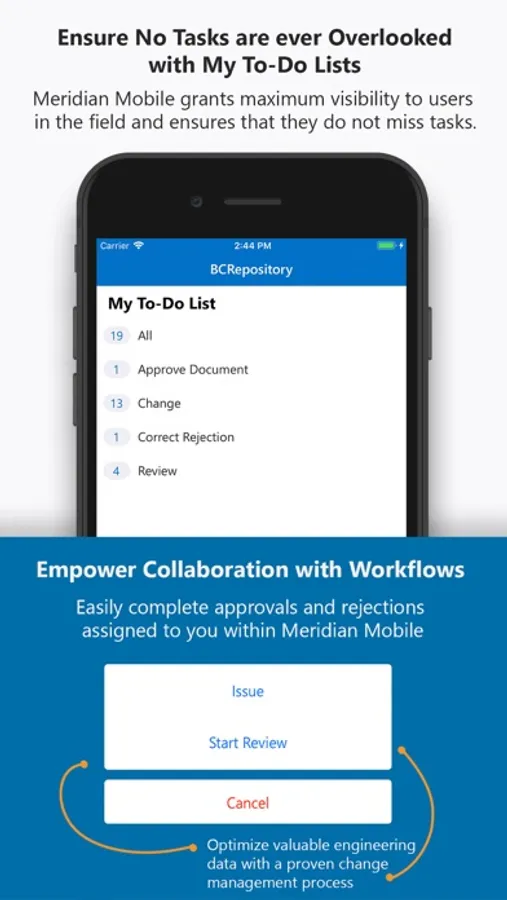 Reviewers and approvers of asset related engineering information have the ability to take action on their workflow tasks while they are mobile and away from their desk.